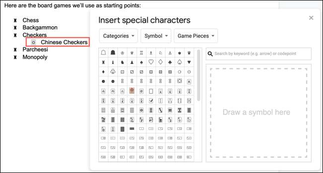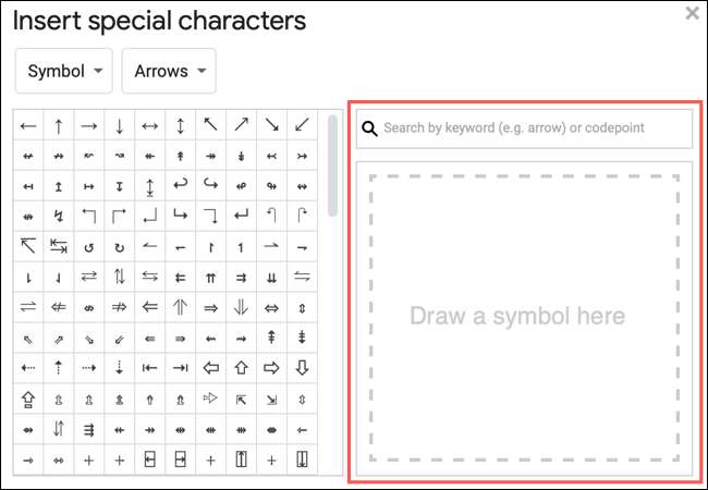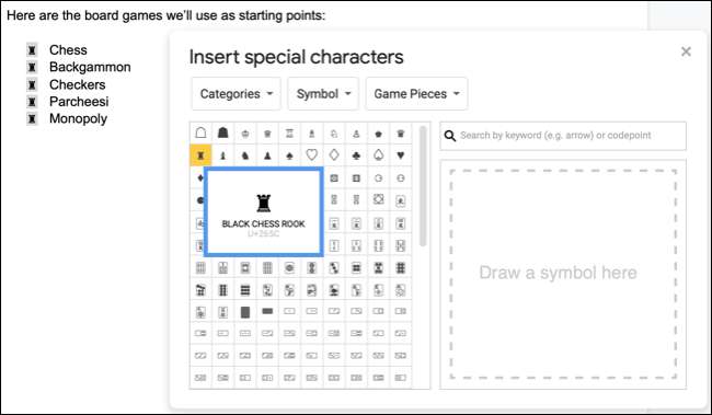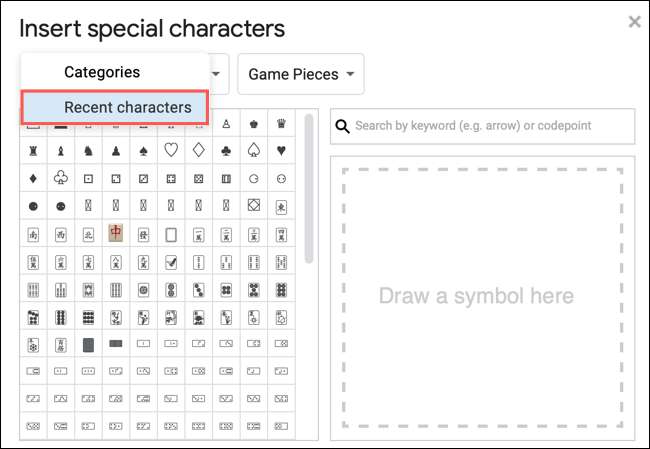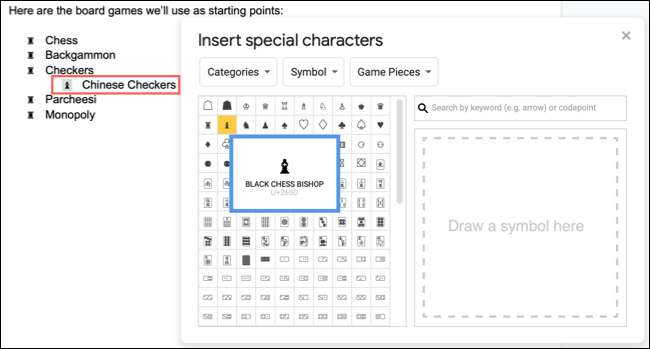 Khi cửa sổ ký tự chèn hiển thị, đã đến lúc tìm các ký hiệu Bullet tùy chỉnh của bạn. Nếu bạn có một cái gì đó đặc biệt trong tâm trí, bạn có thể tìm kiếm theo từ khóa ở phía bên phải. Bạn cũng có thể vẽ một biểu tượng nếu bạn muốn phác họa Hình ảnh cho những viên đạn của bạn .
