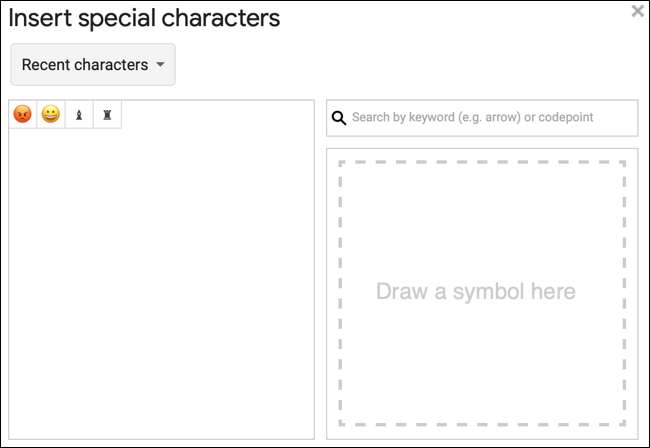 Ghi chú: Tùy chọn các ký tự gần đây sẽ không hiển thị cho đến khi bạn sử dụng ký hiệu tùy chỉnh.