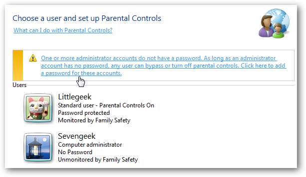 Nếu bạn thấy mật khẩu chưa được đặt khi bạn truy cập Kiểm soát của phụ huynh, hãy nhấp vào thông báo và bạn sẽ được nhắc và Đảm bảo Mật khẩu của Quản trị viên.