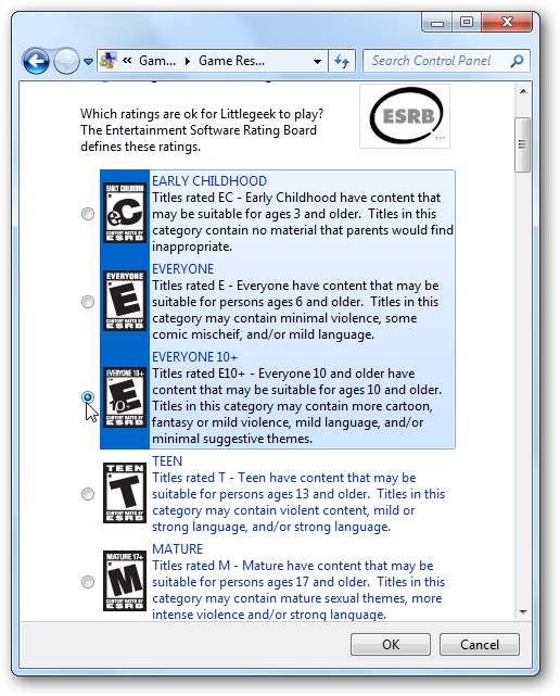 Nhấp vào Trò chơi để kiểm soát loại quyền truy cập của con bạn vào trò chơi trên máy tính. Bạn hoàn toàn có thể chặn tất cả các trò chơi hoặc chọn trò chơi theo xếp hạng và tên trò chơi. Các xếp hạng trò chơi này dựa trên Bảng xếp hạng phần mềm giải trí.