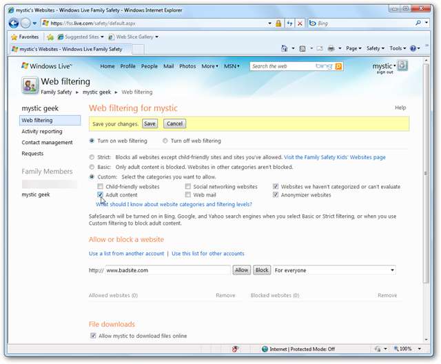 Windows 7 không có Bộ lọc Web như Vista đã làm. Nếu muốn có các kiểm soát bổ sung như Lọc web và báo cáo hoạt động, bạn sẽ cần cài đặt Windows Live Family Safety, một phần của bộ Window Live Essentials. Với nó, bạn có thể chặn quyền truy cập vào các trang web nhất định và cũng có thể truy cập vào báo cáo hoạt động cho bạn biết những trang web mà con bạn đã truy cập.
