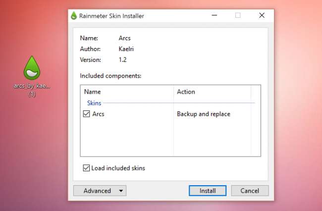 Để cài đặt skin, chỉ cần nhấp đúp vào tệp .rmskin. Cửa sổ của Rainmeter sẽ bật lên cho phép bạn cài đặt và kích hoạt skin. Đối với một số giao diện, có rất nhiều tính năng khác nhau, vì vậy nếu bạn không muốn tải mọi thứ cùng một lúc, hãy bỏ chọn “Tải các giao diện đi kèm” và Rainmeter sẽ chỉ thêm chúng vào danh sách các giao diện của bạn.