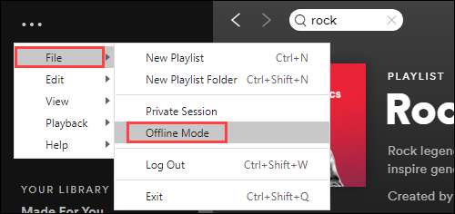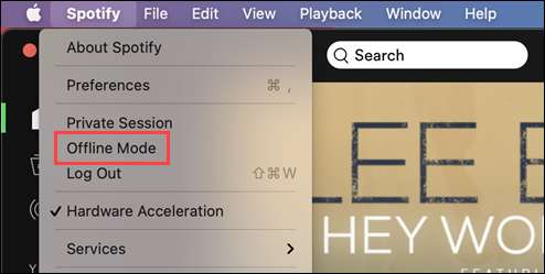 Nhấp vào "Chế độ ngoại tuyến" để làm cho Spotify đi ngoại tuyến.