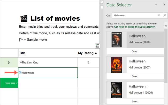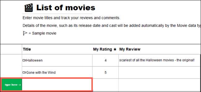 Bắt đầu bằng cách nhập từ khóa hoặc cụm từ trong ô thích hợp áp dụng cho kiểu dữ liệu. Đối với danh sách phim, bạn sẽ nhập một tiêu đề phim.