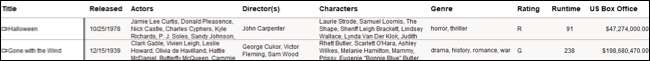 Các tab khác trong mẫu cũng có thể chứa thêm thông tin. Sử dụng ví dụ về danh sách phim của chúng tôi, nếu chúng tôi truy cập tab Cast, chúng ta có thể biết thêm chi tiết về thành viên Cast bằng cách nhấp vào biểu tượng liên hệ bên cạnh tên của chúng.