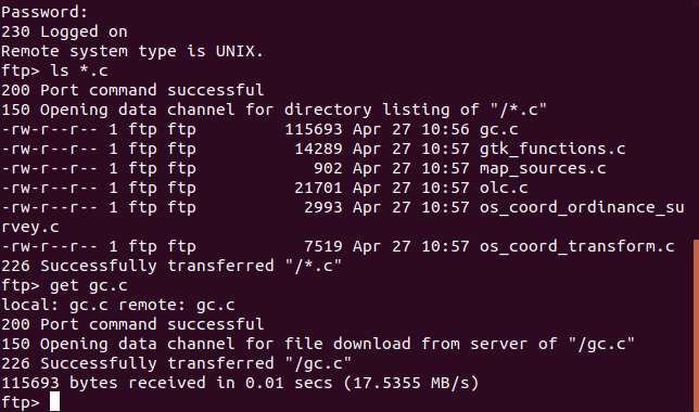 Bạn sẽ được nhắc nhập mật khẩu của mình cho trang FTP. Nhập mật khẩu của bạn và nhấn Enter. Mật khẩu của bạn không được hiển thị trên màn hình. Nếu tổ hợp tên tài khoản người dùng FTP và mật khẩu của bạn được xác minh bởi máy chủ FTP, thì bạn sẽ đăng nhập vào máy chủ FTP.