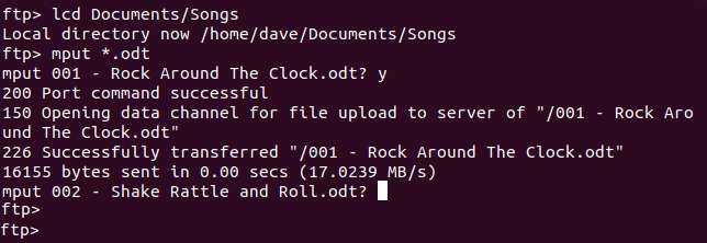 Như bạn có thể mong đợi, có một lệnh để đưa nhiều tệp vào máy chủ FTP cùng một lúc. Nó được gọi là