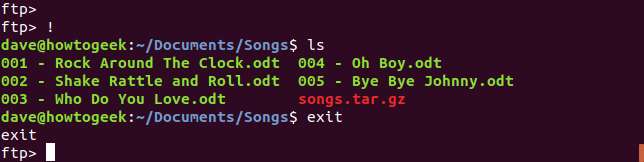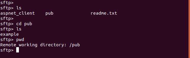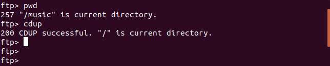 Người dùng ftp của chúng tôi tạo một thư mục có tên là âm nhạc, thay đổi vào thư mục mới đó, xác nhận vị trí của họ bằng cách sử dụng