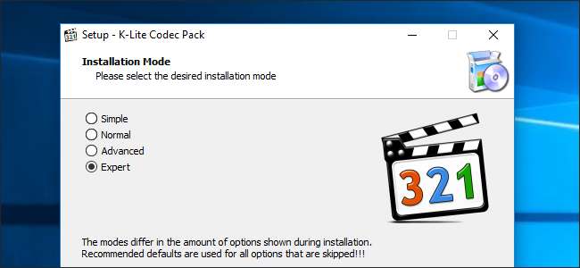 Cuối cùng, tùy thuộc vào video bạn định xem, bạn có thể cần tải xuống và cài đặt K-Lite Codec Pack . Tôi khuyên bạn nên cài đặt phiên bản Cơ bản. Hãy chắc chắn nhấp vào nút radio “Chuyên gia” và chú ý cẩn thận – K-Lite đi kèm với crapware, bạn chỉ cần từ chối cài đặt nó trong suốt trình hướng dẫn.