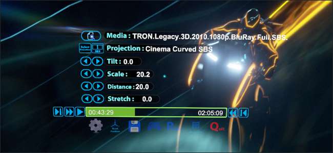 - Video 3D : Video 3D có một số dạng khác nhau, vì vậy hãy kiểm tra video bạn đã tải xuống – hoặc cài đặt bạn đã sử dụng khi trích xuất nó – để xem đó là Half Side-By-Side, Full Side-By-Side, Half Over-Under, hoặc Full Over-Under. Đặt Máy chiếu thành Rạp chiếu phim hoặc Điện ảnh cong, sau đó chọn SBS hoặc OU thay vì Mono. Nếu video là Half SBS, hãy đặt Stretch thành “100” để nó hiển thị ở tỷ lệ khung hình thích hợp.