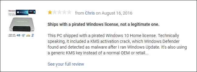 Vào thời điểm đó, MarsKing đã gửi cho tôi một tin nhắn thông qua Amazon đề nghị bán cho tôi một chiếc PC mới “với [license] hợp pháp” với giá giảm 50%. Tôi đã không chấp nhận lời đề nghị này, nhưng tôi tưởng tượng MarsKing sẽ mong đợi tôi rút lại đánh giá tiêu cực nếu tôi làm vậy.