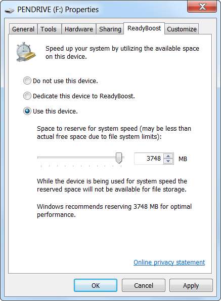 Tóm lại, ReadyBoost có thể sẽ không cải thiện nhiều hiệu suất máy tính của bạn. Nếu bạn có dung lượng RAM rất nhỏ (512 MB trở lên) và ổ USB rất nhanh, bạn có thể thấy hiệu suất tăng lên - nhưng thậm chí nó không được đảm bảo trong tình huống này.