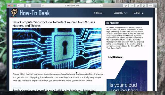 Ngay cả khi bạn không sử dụng trình chặn quảng cáo vì lý do đạo đức, một số trang web có quá nhiều quảng cáo và các lựa chọn kiểu chữ tệ hại khiến việc đọc trở thành một việc vặt. Safari cung cấp một cách tích hợp để giải quyết vấn đề này: Chế độ đọc. Nhấp vào một nút và văn bản của bài báo bạn đang đọc được trích xuất và đưa vào một phương tiện chặn sạch.