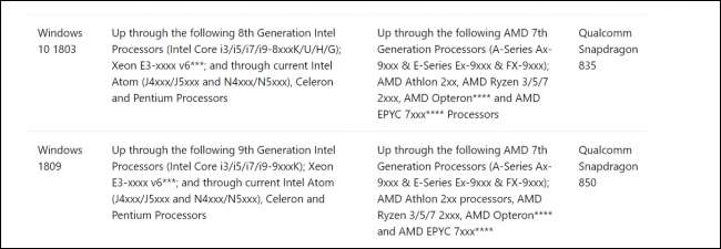 Theo Microsoft’s yêu cầu bộ xử lý , các thiết bị mới có bộ xử lý Intel thế hệ thứ 9 hoặc Qualcomm Snapdragon 850 chỉ được hỗ trợ chính thức trên Bản cập nhật tháng 10 năm 2018.