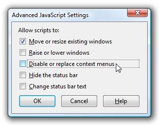 Từ hộp thoại này, bạn có thể bỏ chọn tùy chọn “Tắt hoặc thay thế menu ngữ cảnh”. Lưu ý: Nếu bạn cũng muốn ngăn các trang web thay đổi kích thước cửa sổ trình duyệt của mình, bạn có thể bỏ chọn “Di chuyển hoặc thay đổi kích thước cửa sổ hiện có” khi đang ở đó.