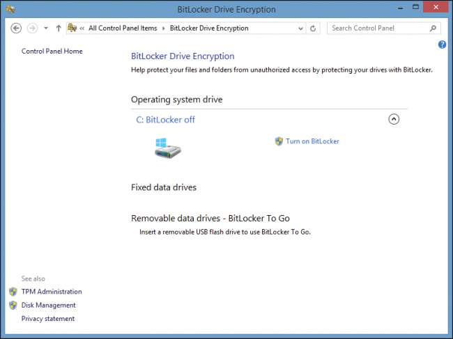 Để có bản tóm tắt đầy đủ, chúng tôi khuyên bạn nên xem bài viết của chúng tôi về cách thiết lập mã hóa BitLocker trên Windows . Mã hóa thường không được bật theo mặc định trên Windows 7 hoặc 8.1. Nếu bạn sử dụng máy tính xách tay Windows thì bạn nên đảm bảo rằng nó là như vậy.