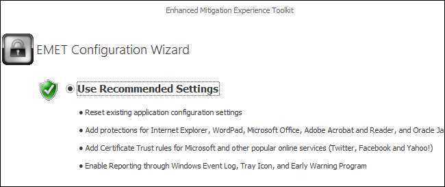 Tải về Bộ công cụ Trải nghiệm Giảm nhẹ Nâng cao (EMET) của Microsoft và cài đặt nó. Chọn tùy chọn Sử dụng Cài đặt được Đề xuất để bật các cài đặt được đề xuất nhằm bảo vệ các chương trình thường được khai thác như Internet Explorer, Microsoft Office, Adobe Reader và plugin Java không an toàn .
