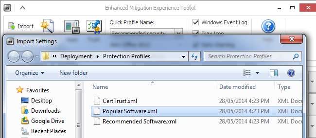 Chọn tệp Software.xml Phổ biến được cung cấp với EMET và nhập tệp đó. Tệp này bổ sung các quy tắc bổ sung để giúp bảo vệ các chương trình phổ biến của bên thứ ba như Firefox, Chrome, Skype, iTunes, Photoshop, Thunderbird, Opera, Google Talk, Pidgin, VLC, WinRAR và 7-Zip.