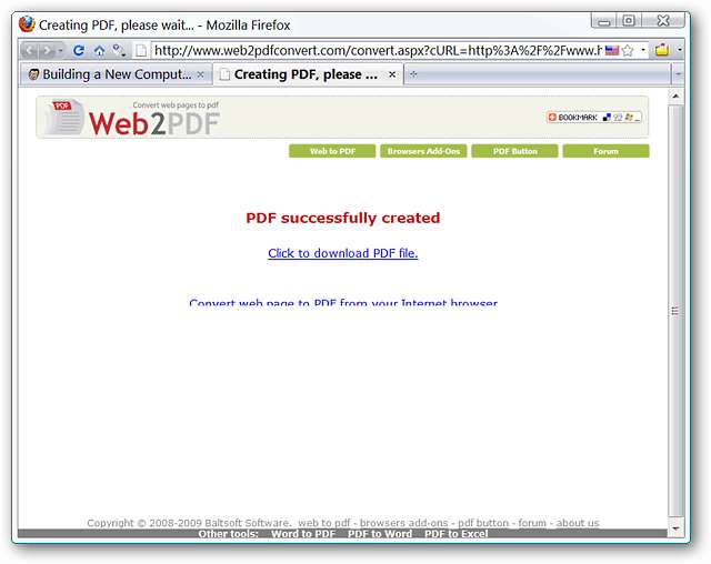 Khi bạn đã chọn một trang web, hãy nhấp vào “Nút Web2PDF” và bạn sẽ thấy tệp pdf mới của mình đang được tạo.