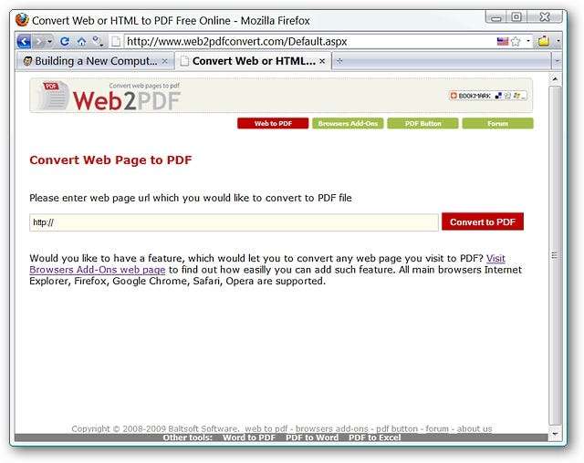 Có lẽ bạn đang sử dụng trình duyệt không phải Firefox hoặc đang giữ số lượng tiện ích mở rộng ở mức tối thiểu. Chỉ cần duyệt qua trang web nơi bạn có thể thêm “Web2PDF Bookmarklet” vào trình duyệt yêu thích của mình hoặc chỉ cần nhập địa chỉ web thích hợp.