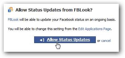 Sau đó, bạn sẽ được đưa đến trang Facebook để cho phép FBLook cập nhật trạng thái.