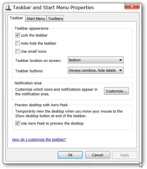 Mọi người đều quen thuộc với nhiều cửa sổ ứng dụng trong hệ điều hành Windows của họ mà đơn giản là không thể thay đổi kích thước. Cái bạn cần là sự hợp tác chứ không phải thái độ. Đối với ví dụ của chúng tôi, chúng tôi đã chọn “Cửa sổ thuộc tính thanh tác vụ và menu bắt đầu”… hãy để ý con trỏ ở góc dưới bên phải. Không có sự hài lòng nào khi thay đổi kích thước…