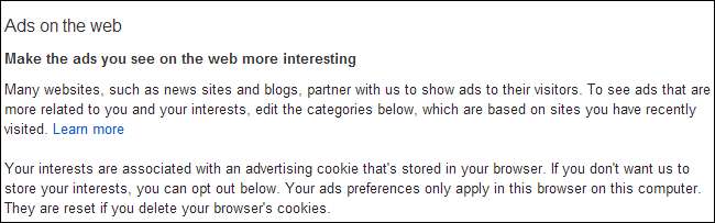 Thông tin này được sử dụng để nhắm mục tiêu quảng cáo đến bạn - ví dụ: nếu bạn tìm kiếm bảo hiểm xe hơi và sau đó truy cập vào một trang web tin tức, bạn có thể thấy quảng cáo về bảo hiểm xe hơi trên trang web tin tức. Các quảng cáo có thể không liên quan đến trang web bạn hiện đang truy cập, nhưng chúng sẽ liên quan đến các trang web bạn đã truy cập trước đây. Tùy thuộc vào mạng quảng cáo, bạn có thể chọn không tham gia - như với Tùy chọn Google Ads trang này cũng hiển thị các danh mục quảng cáo mà bạn đã được Google chỉ định dựa trên các trang web mà bạn đã được theo dõi.