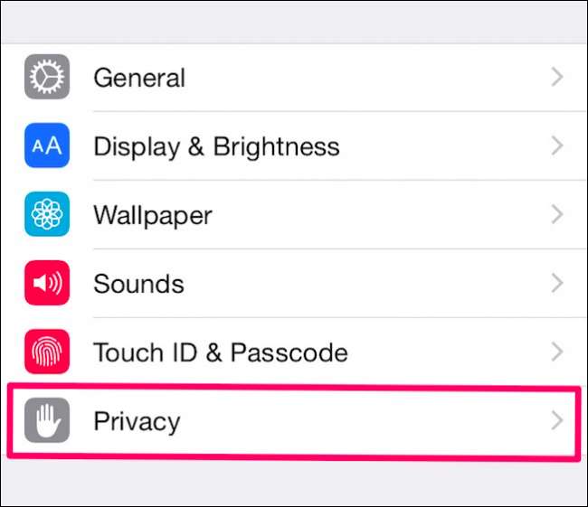 Nếu bạn đang sử dụng thiết bị iOS, hãy mở cài đặt của bạn và nhấn vào các điều khiển "Quyền riêng tư".