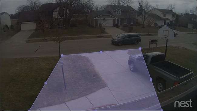Ngoài ra, bạn cũng có thể tận dụng "vùng hoạt động", cho phép bạn đánh dấu một phần nhất định của những gì Nest Cam có thể nhìn thấy và nhận cảnh báo chuyển động nếu phát hiện thấy bất kỳ điều gì trong khu vực cụ thể đó. Điều này có thể tuyệt vời nếu bạn muốn điều chỉnh những chiếc xe đang chạy qua và chỉ tập trung vào đường lái xe hoặc lối đi của mình.
