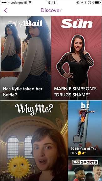 Khám phá giống như Câu chuyện ngoại trừ một nhóm nhỏ các ấn phẩm. Các phương tiện truyền thông như Thư hàng ngày , Mặt trời , Buzzfeed , Sky News , Mashable , Hành vi xấu xa và Địa lý quốc gia tất cả đều nằm trong chương trình Snapchat’s Discover. Họ sử dụng nó để chia sẻ các bài báo, video phổ biến và những thứ tương tự.