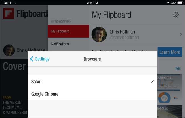 Các nhà phát triển ứng dụng được phép để ứng dụng của họ mở các ứng dụng khác, vì vậy có một cách để đặt một trình duyệt khác làm trình duyệt mặc định của bạn. Mọi ứng dụng đều phải mã hóa danh sách các trình duyệt thay thế mà nó hỗ trợ và cung cấp cách để lựa chọn giữa chúng. Người dùng sẽ phải chọn trình duyệt mặc định của họ trong từng ứng dụng riêng lẻ và họ sẽ không gặp may nếu họ thích một trình duyệt mà nhà phát triển ứng dụng chưa đưa vào.
