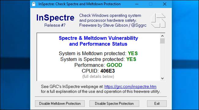 Bạn có thể kiểm tra xem PC của bạn có được bảo vệ trước Spectre không với Gibson Research Corporation's InSpectre dụng cụ. Giả sử bạn chưa cài đặt bản cập nhật chương trình cơ sở UEFI từ nhà sản xuất máy tính của bạn — hoặc nhà sản xuất bo mạch chủ của bạn, nếu bạn tự xây dựng máy tính của mình — thì bạn sẽ thấy rằng máy tính của mình dễ bị tấn công bởi Spectre. Nếu bạn đã cài đặt các bản vá lỗi đó, công cụ này sẽ hiển thị mức độ ảnh hưởng của các bản vá lỗi đến hiệu suất PC của bạn .